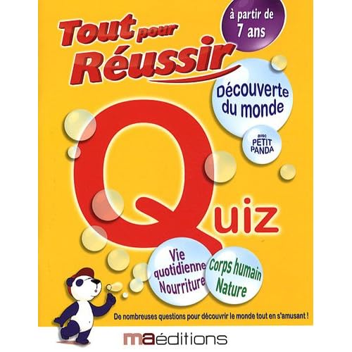 Découverte du monde avec petit panda : Quiz à partir de 7 ans Monday, January 13, 2020 Edit Category: Livres,Livres pour enfants,Jeux, arts et créationDécouverte du monde avec petit panda : Quiz à partir de 7 ans Details Reviews Share this post
